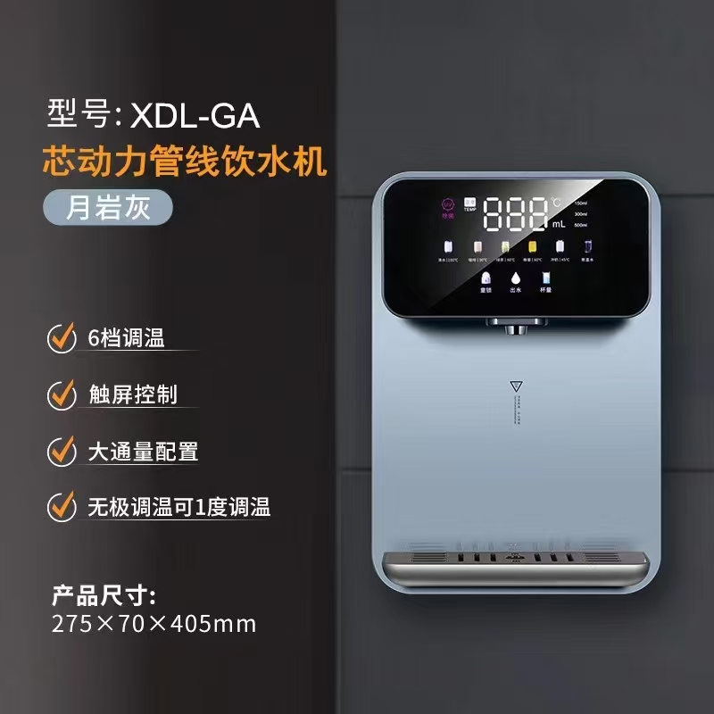 返回目录 芯动力壁挂式速热管线机 XDL-GA 鲜活好水,秒开秒饮。 无反复加热,拒绝千滚水,每一滴都是鲜活的水。 芯动力壁挂式速热管线机 XDL-GA 全新上市 净水器好搭挡, 饮水届王者段位选手, 教您一键“断舍离”, 告别“接水、烧水、灌水、等水凉” 一键即饮, 让全家都爱上喝水。 产品特点: 1、鲜活好水,秒开秒饮 2、抑菌模块,饮用无忧 3、小巧美观,不占空间 4、安全保护,家人放心 5、智能数显,清晰可见 全国统一零售价:1580元
