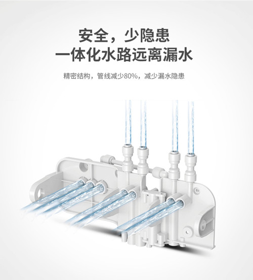 3、一体化水路远离漏水,安全,少隐患。4、高效反渗透RO膜,出水直饮。