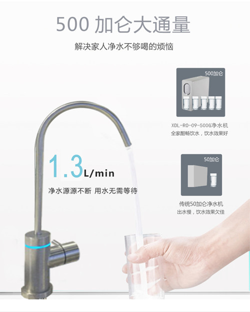 1、500G加仑大通量,解决家人净水不够喝的烦恼。