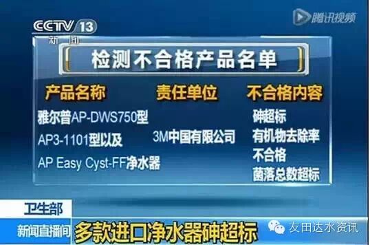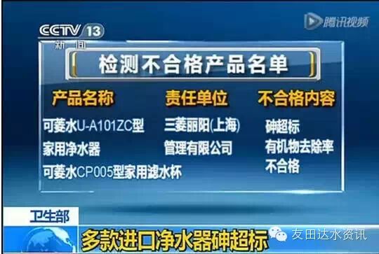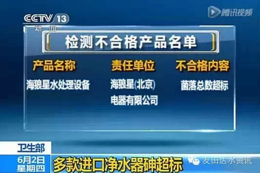日前,卫生部发布涉及饮用水卫生安全产品监督管理公告,曝光了包括美的、安吉尔、澳柯玛、完美、等品牌在内的9种不合格水质处理器,这些产品存在主要问题是浸泡试验菌落总数超标。