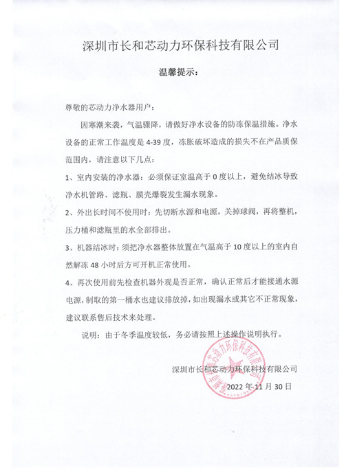 净水器冬季防冻须知